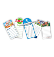 Блокнот, формат А6/А5, обложка и подложка цветность (4+0), картон 300 г/м², брошюровка на клей с длинной/короткой стороны.